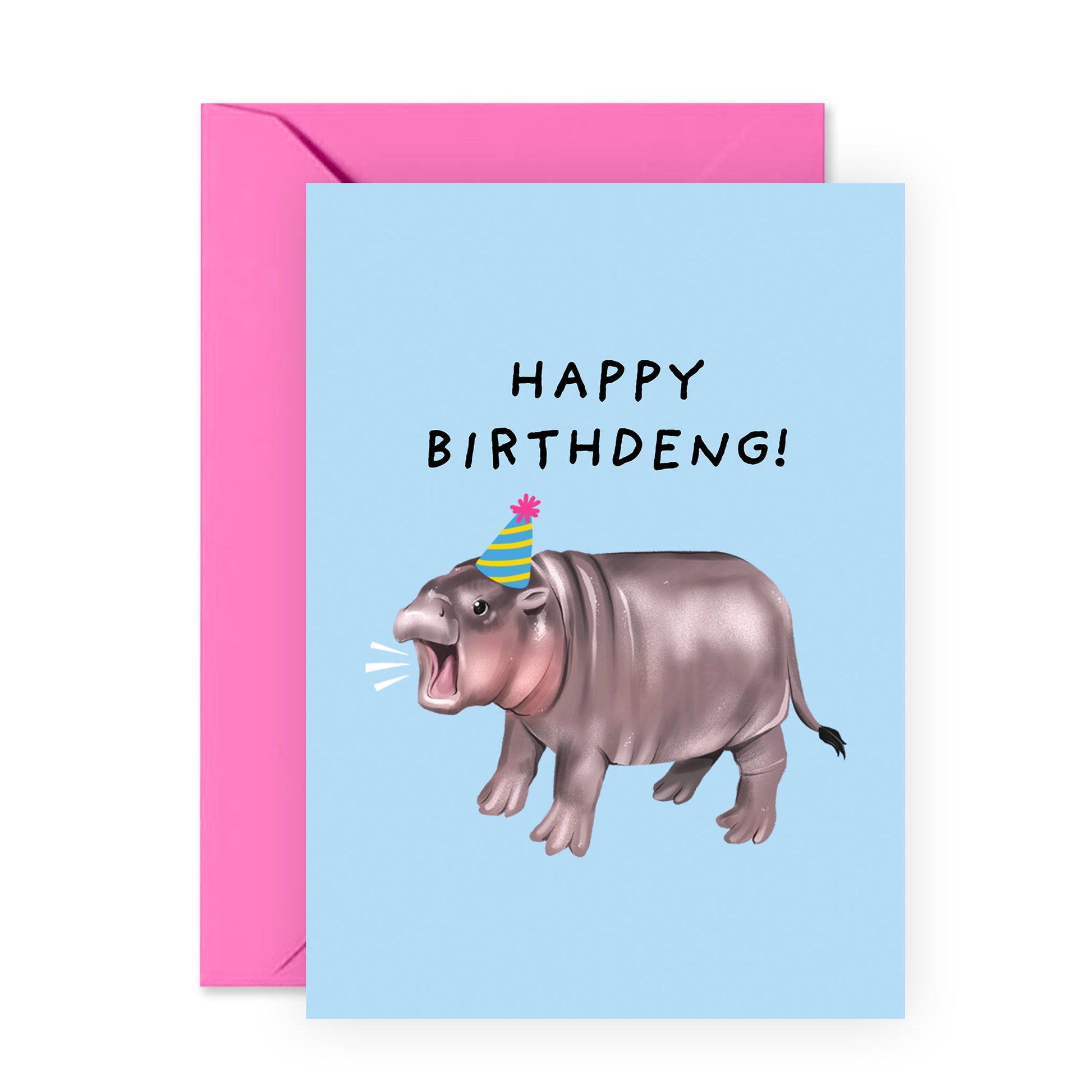 Adorable Birthday Card Moo Deng Hippo - 'Happy Birthday Deng' - Gifts for Him, Her, Coworker, Sister, Brother, Friends, Niece, Nephew - Baby Hippo - Comes with Fun Stickers