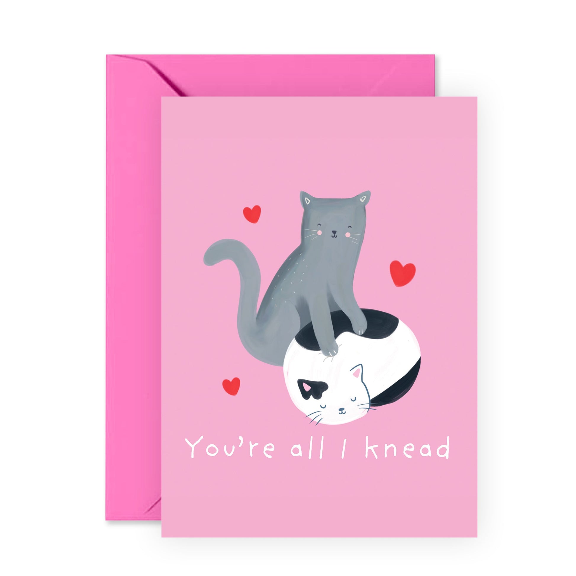 Anniversary Card For Him - You're All I Knead - Cats Pun - Cute Wedding Anniversary Card For Husband Wife - Valentines Day Card - Gift For Boyfriend Girlfriend - Comes With Stickers