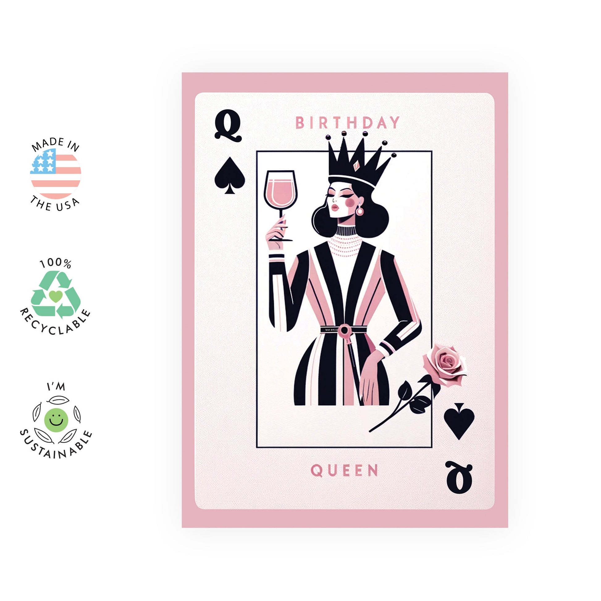 Birthday Cards For Her - Playing Card Birthday Queen - Birthday Queen - Pretty Birthday Card For Mom Nana Wife - Friend Gifts Girly - Ladies Birthday Card - Comes With Stickers