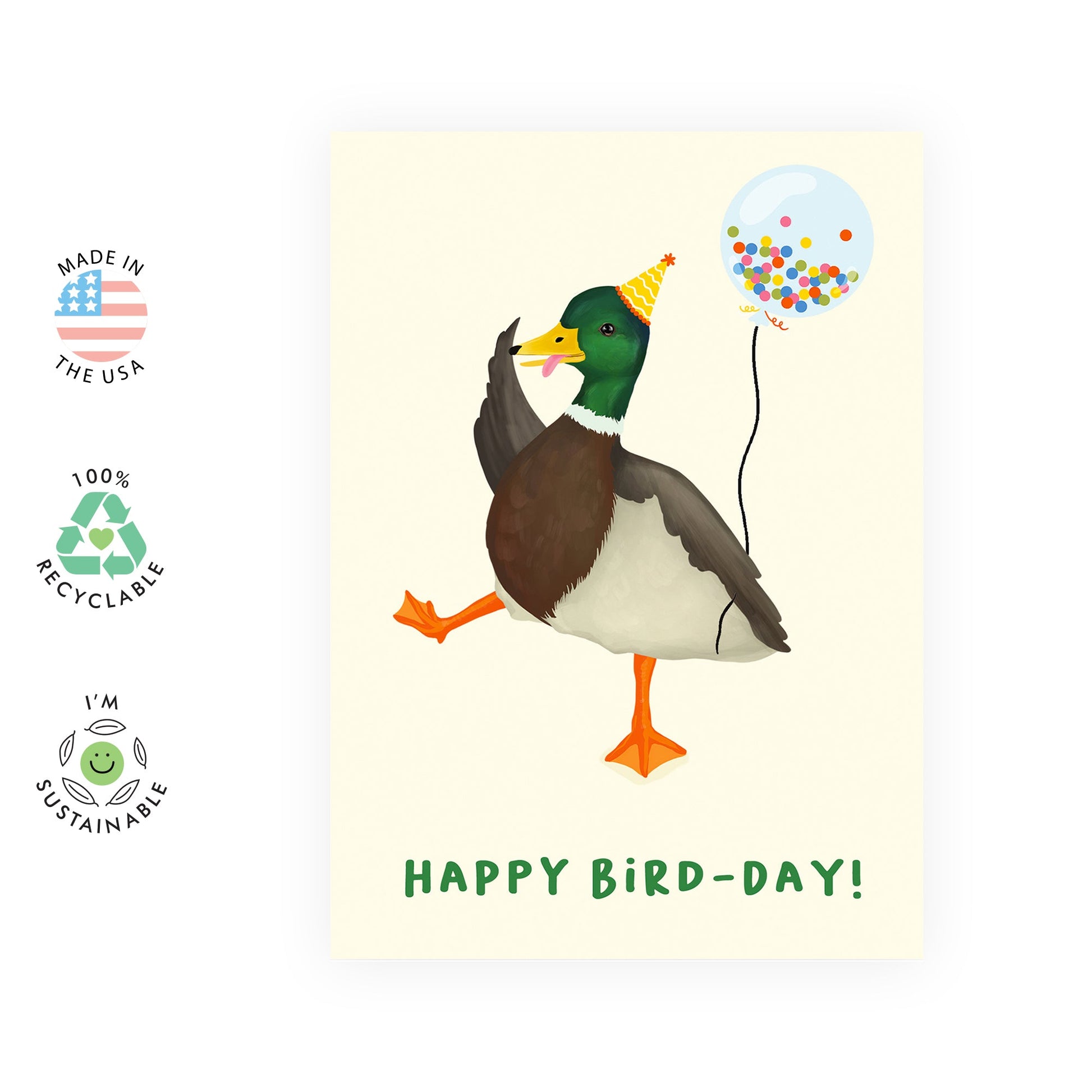 Birthday Cards For Him Her - Happy Bird Day Duck - Birthday Cards For Mum Dad - Gift From Friend - Greeting Cards For Sister Brother - Friend- Comes With Stickers