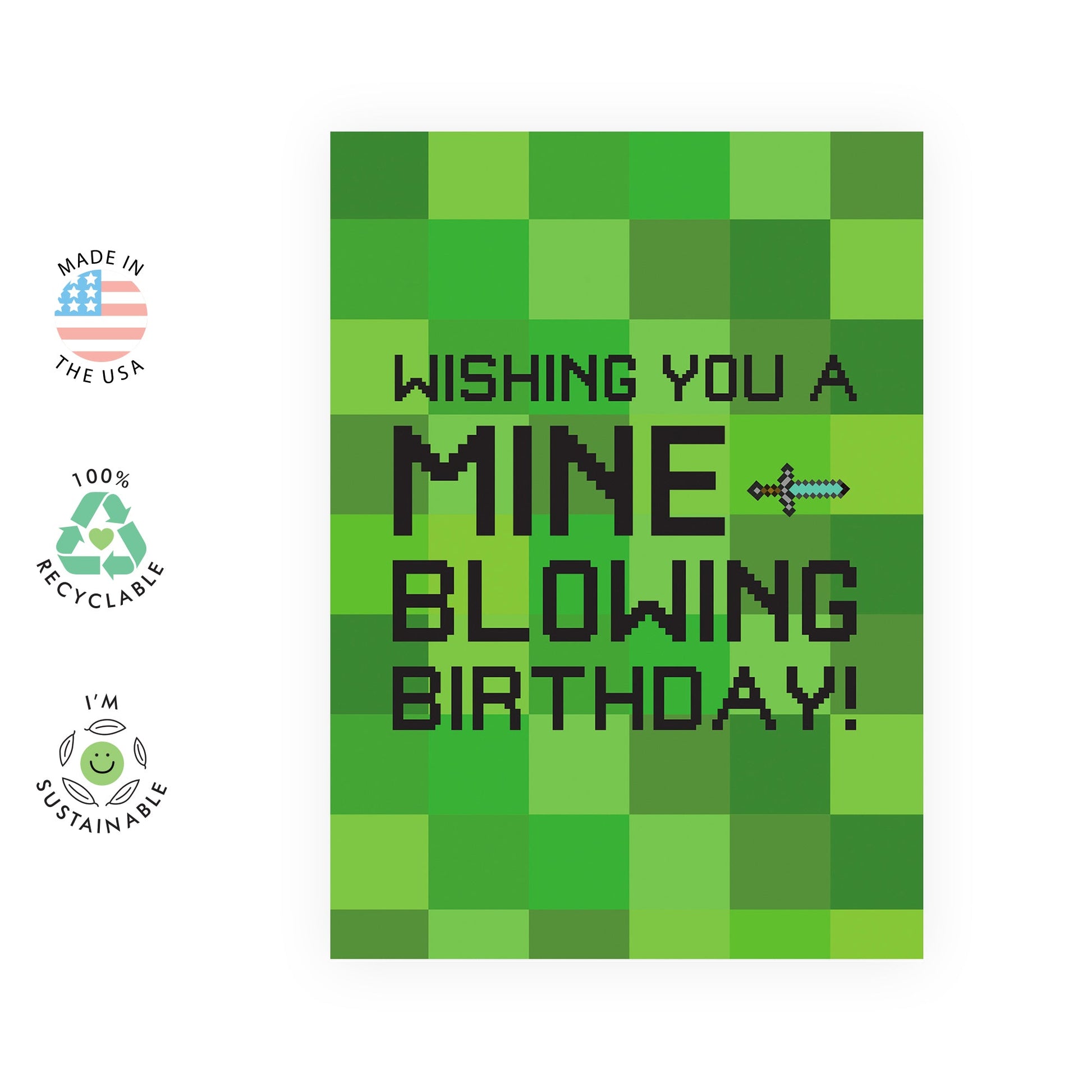 Cool Minecraft-Inspired Birthday Card - Gamer Gifts for Kids, Boy, Son, Nephew, Niece, Girls, Teens, Grandkids, Friends, Neighbours and Him - Pixel Art Mine-Themed - Comes with Fun Stickers