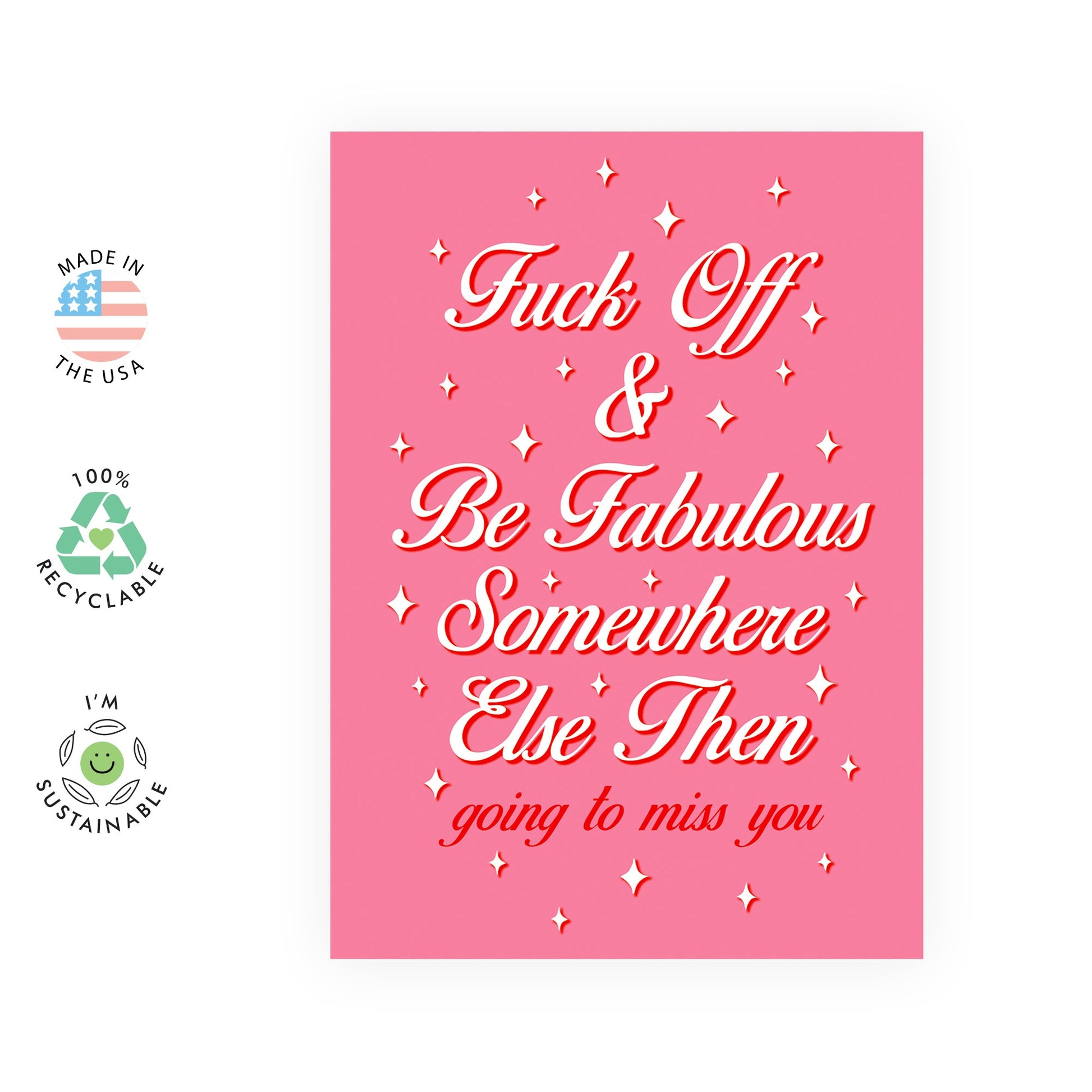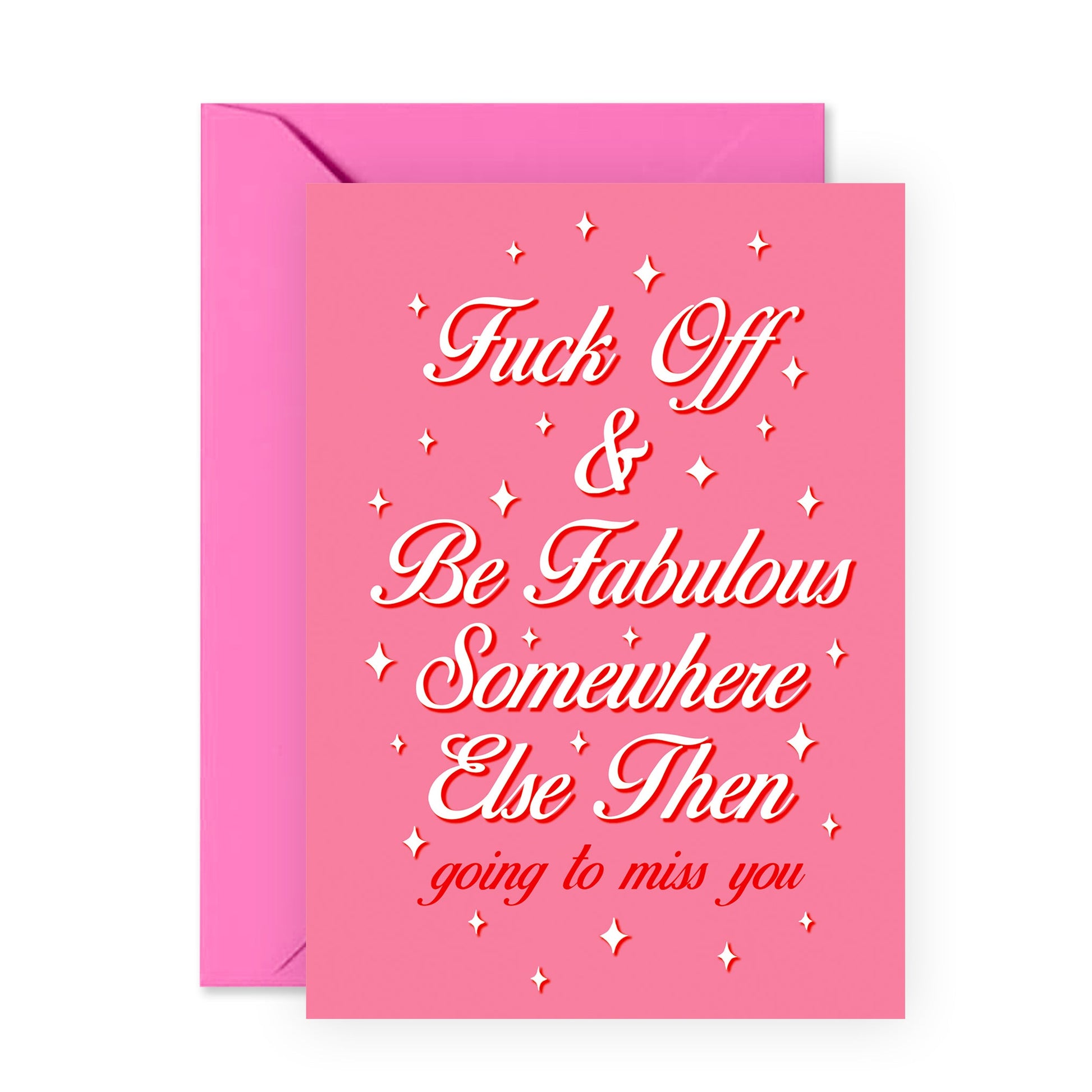 Coworker Leaving Card - Funny Goodbye Cards For Colleague Friends Flatmate - College Farewell Card For Son Daughter Best Friend - Pink And Fabulous - Comes With Fun Stickers