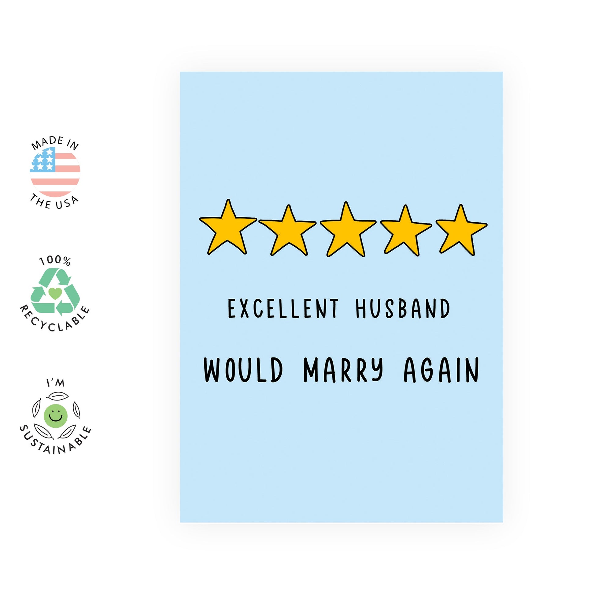 Funny Wedding Anniversary Card - 'Excellent Husband' - Sweet Anniversary Card for Husband - Comes With Fun Stickers Vegan Ink