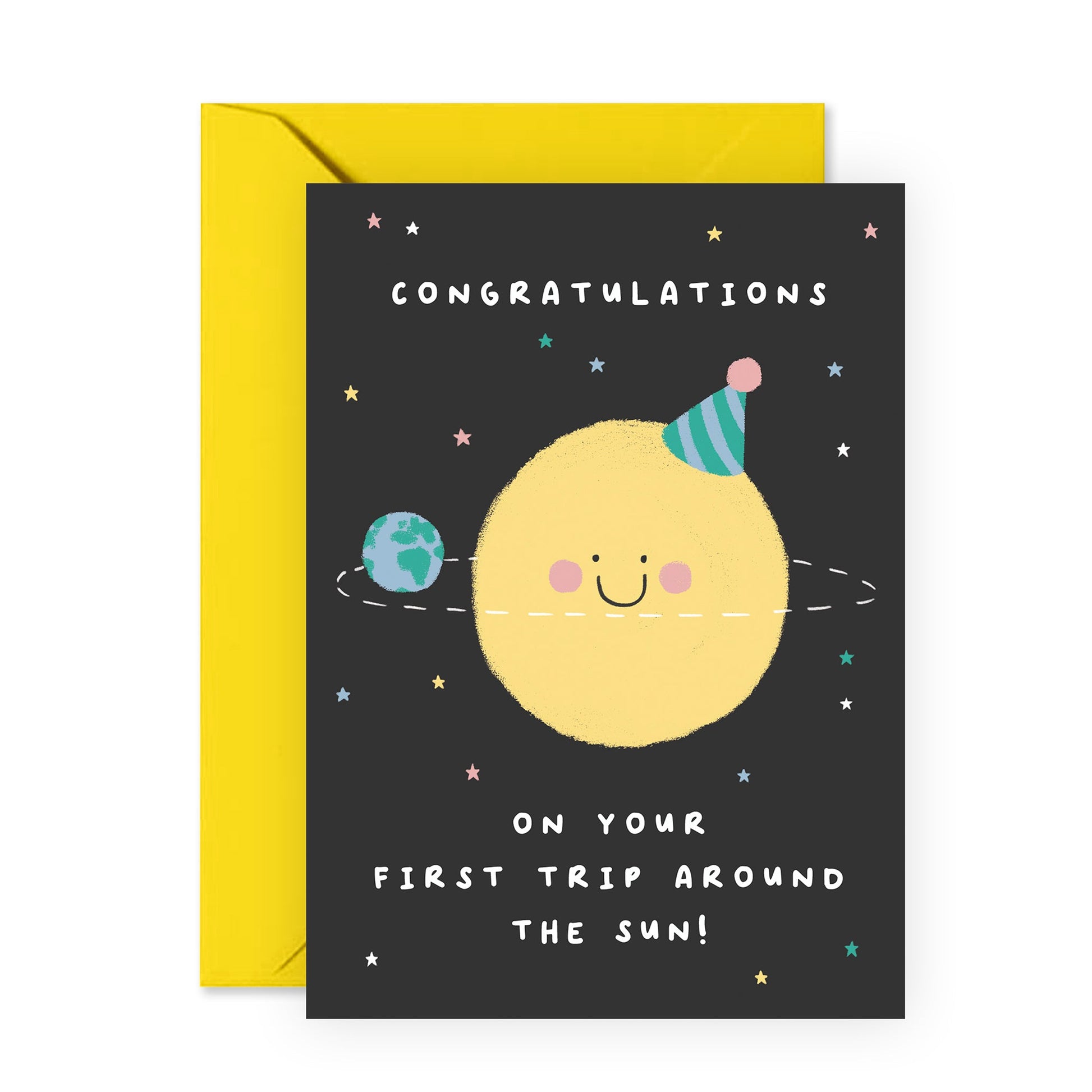 1st Birthday Card - First Trip Around The Sun - For Boys Girls Kids Him Her
