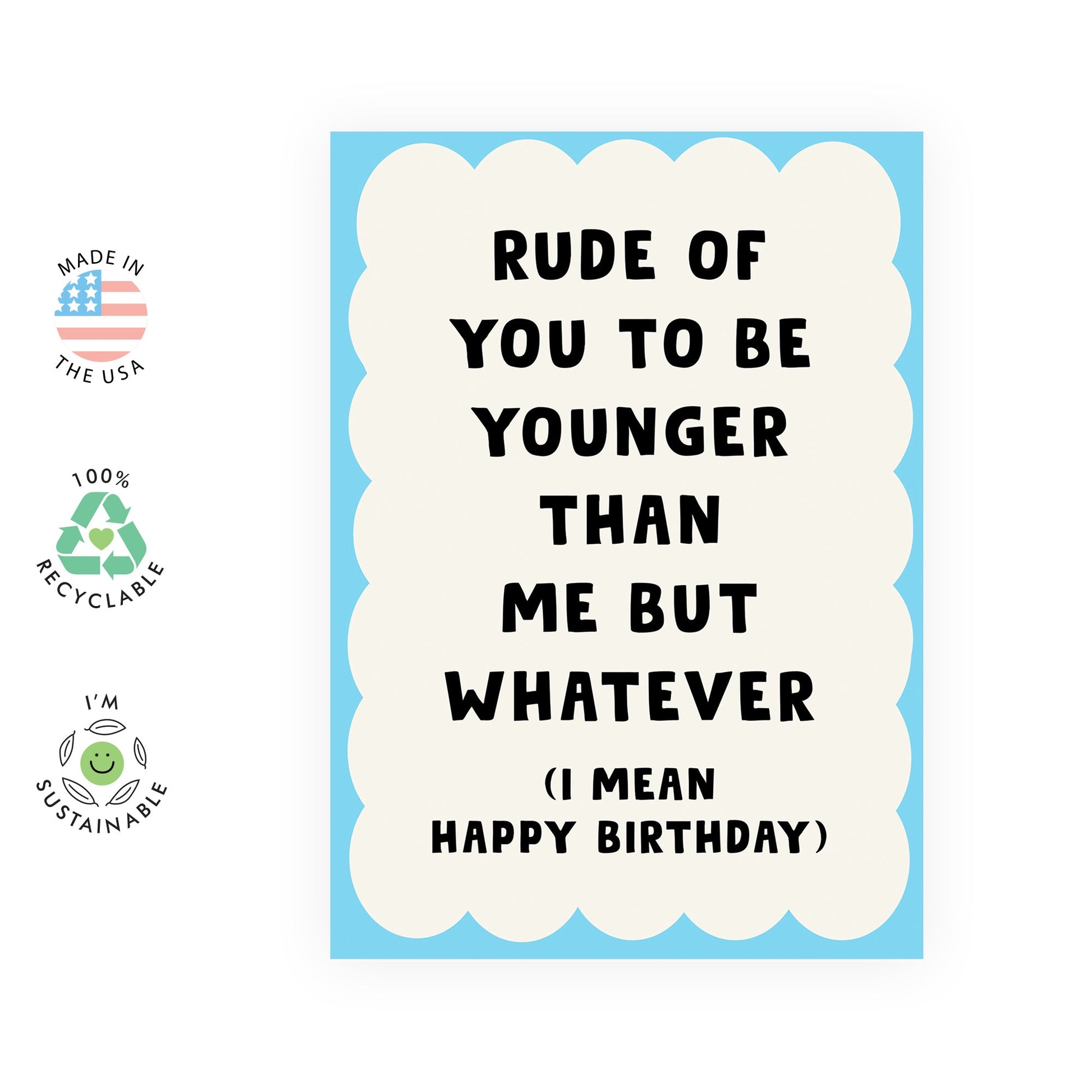 Funny Birthday Cards For Men Women - Rude That You're Younger Than Me - Happy Birthday Cards For Sister Brother Friends - Hilarious Gifts For Him Her - Comes With Stickers