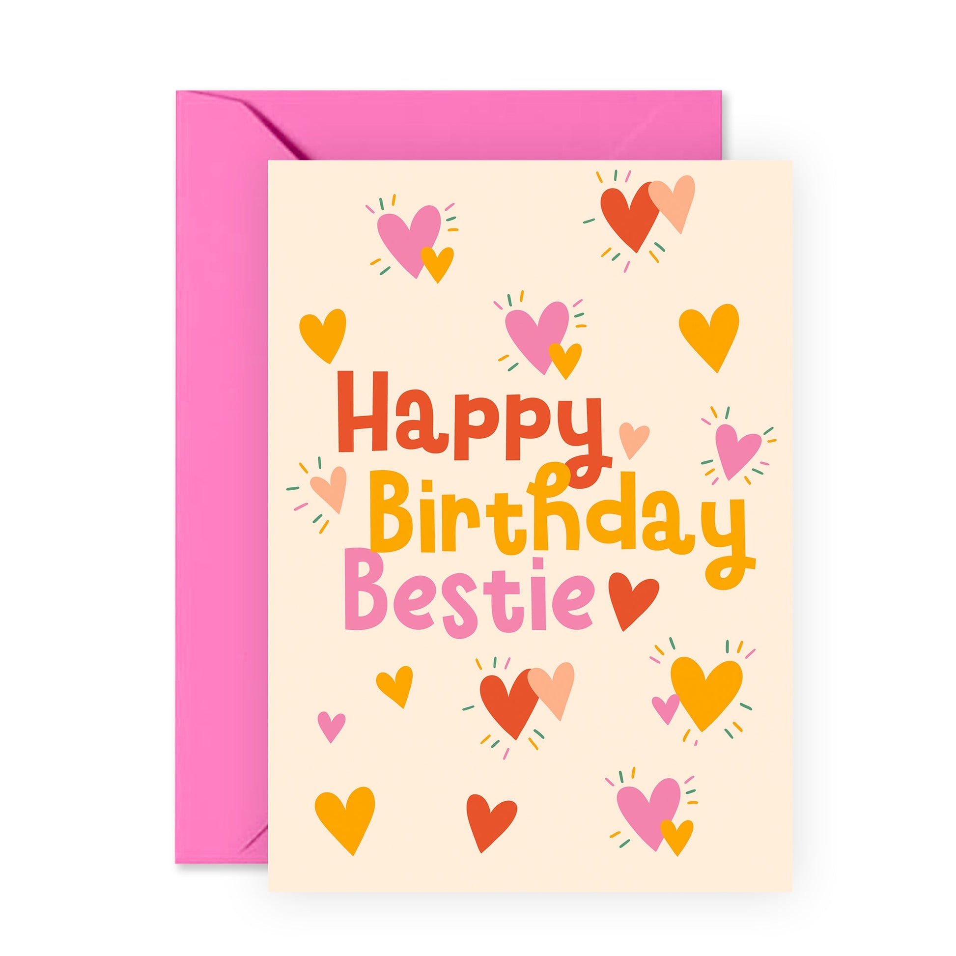 Happy Birthday Bestie Card β Cute Colourful Hearts β Fun and Playful Card for Friend, BFF, Soul Sister, Roommate, She, Her, Girls, Women, Ladies, Girlfriend - Comes with Stickers