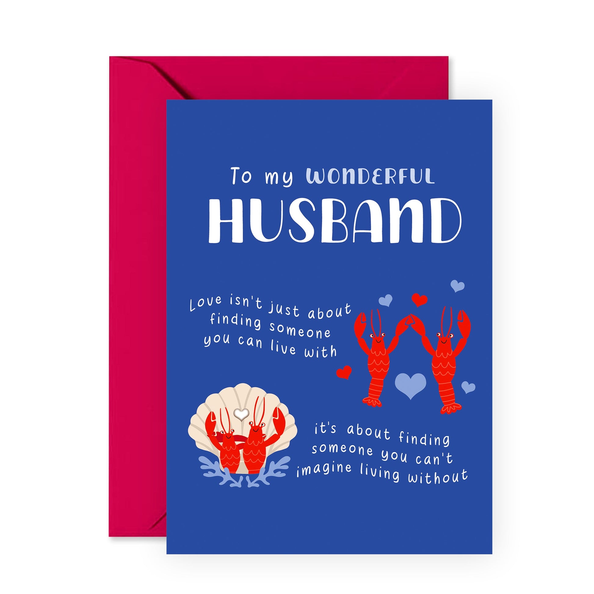 Husband Birthday Card From Wife - To My Wonderful Husband Lobster - Wedding Anniversary Card For Him - Romantic Valentines Day Card For Husband - Comes With Stickers