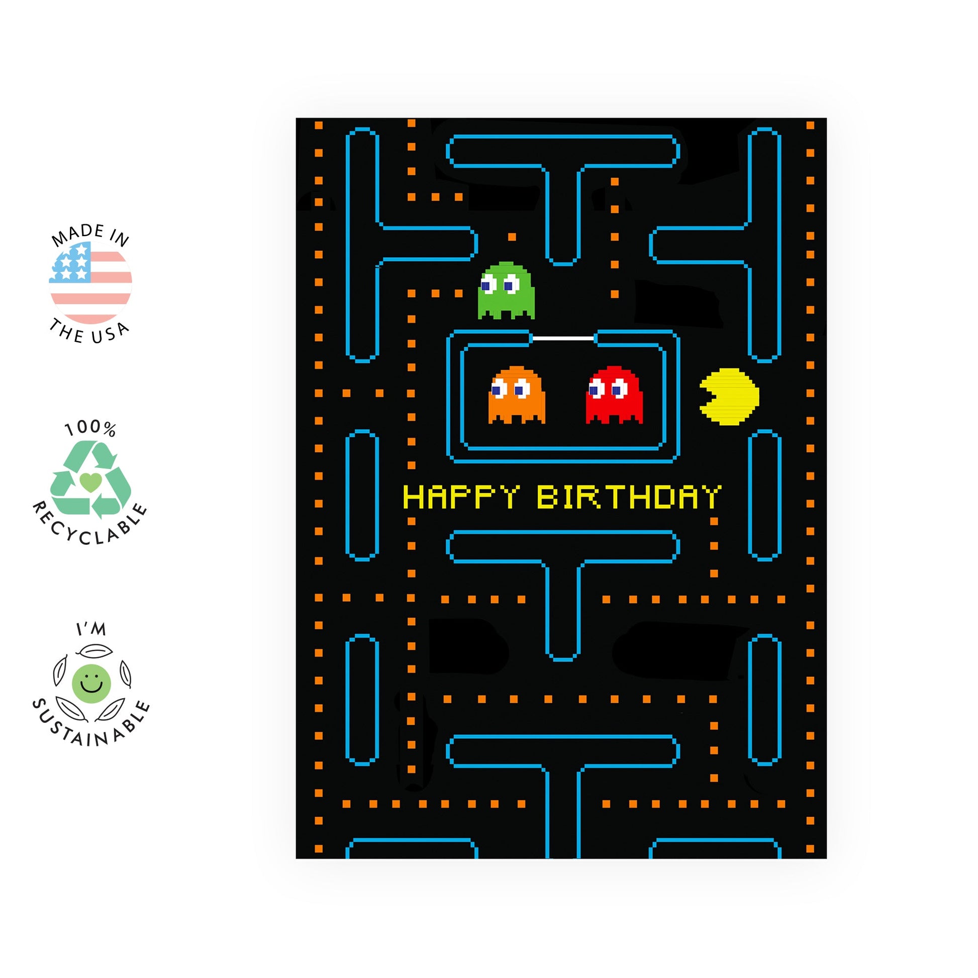 Retro Gaming Birthday Card - Fun Pixelated Arcade Design - Presents for Gamers, Boys, Kids, BFF, Nephew, Son, Boyfriend, Friends, or Neighbour - Pac-man - Perfect for Birthdays