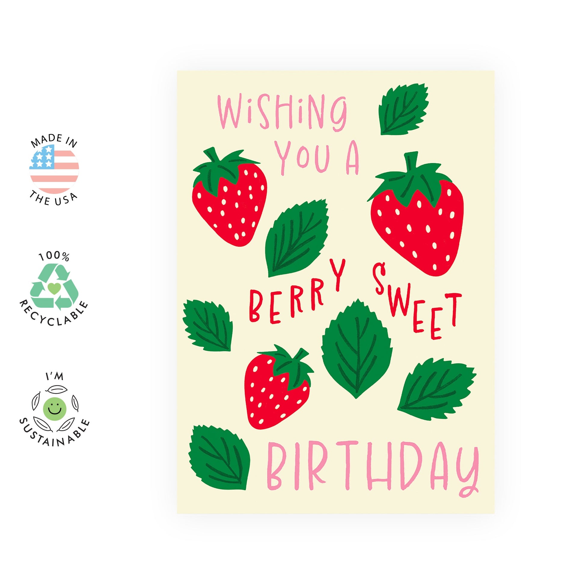 Strawberry Birthday Card for Her or Him - 'Berry Sweet Birthday' - Gifts for Friends, BFF, Bestie, Cousin, Colleague, Coworker - Berries - Comes with Fun Stickers